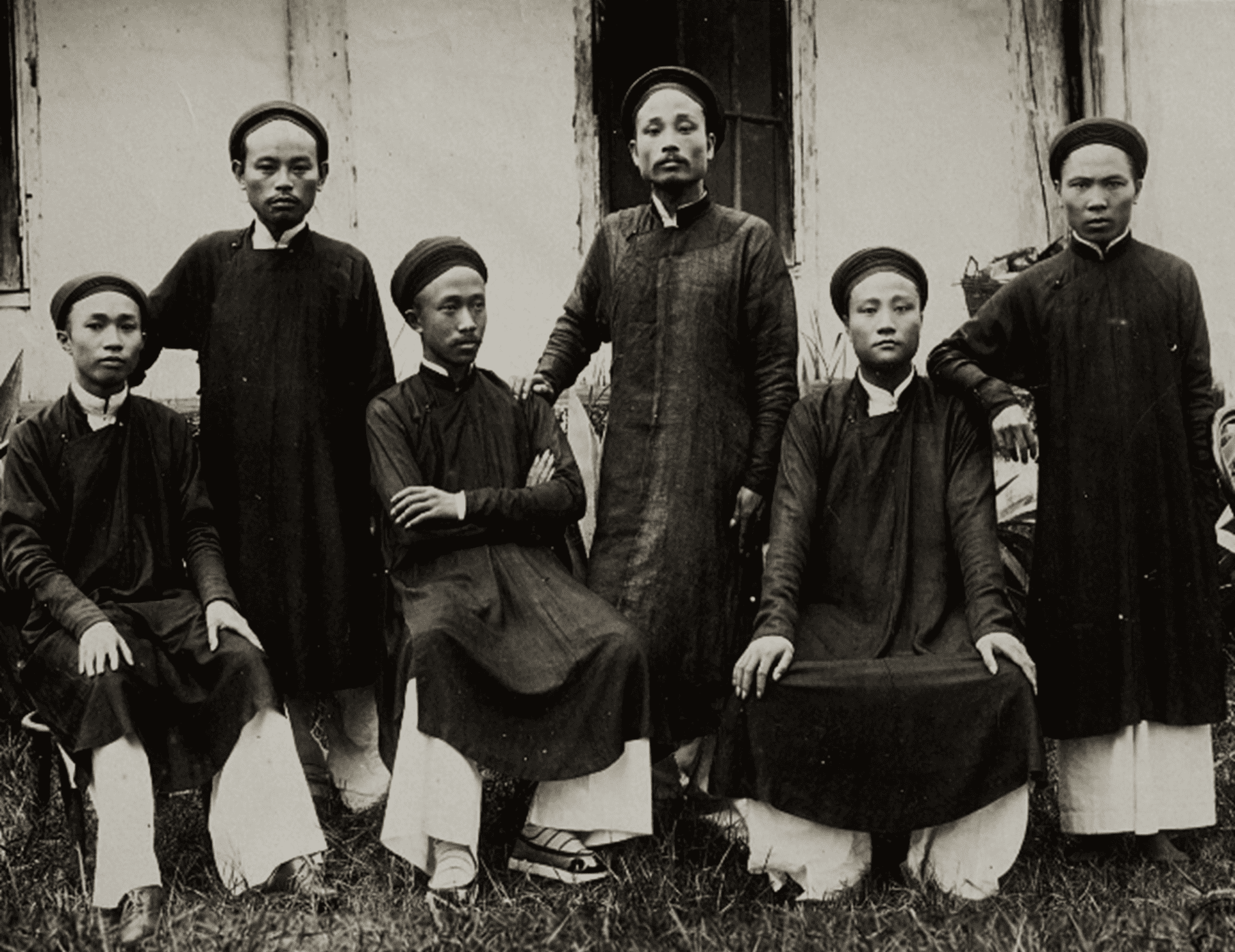 Một nhóm nhà nho và viên thông ngôn người An Nam ở Bắc Kỳ khoảng năm 1888 – 1897. Ảnh: Pierre Dieulefils