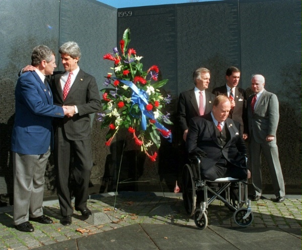 Ngay từ đầu nhiệm kỳ, Clinton đã được các lãnh đạo tổ chức cựu chiến binh cảnh báo không nên xuất hiện tại Đài Tưởng niệm Cựu chiến binh [tham chiến tại] Việt Nam. Khi nghe tin đó, McCain – “gần như theo bản năng”, ông kể với tôi – đã đề nghị được đi cùng Tổng thống. Kerry và McCain đã đồng hành cùng Clinton cho đến chặng cuối cùng. Trong một cuộc họp quan trọng tại Nhà Trắng vào ngày 11 tháng 6 năm 1993, chưa đầy hai tuần sau chuyến thăm nhà tù Hỏa Lò, hai thượng nghị sĩ đã thúc giục Tổng thống dỡ bỏ lệnh cấm vận, đưa ra các lý do về địa chính trị, kinh tế và đặc biệt nhấn mạnh vấn đề danh dự quốc gia, vì phía Việt Nam đã nỗ lực thực hiện tất cả những gì chúng ta yêu cầu trong vấn đề MIA. Tuy nhiên, Thượng nghị sĩ Cộng hòa bảo thủ Bob Smith, phó chủ tịch Ủy ban của Kerry, đã khuyên Clinton “đừng để bị đánh lừa” và phản đối việc dỡ bỏ cấm vận.