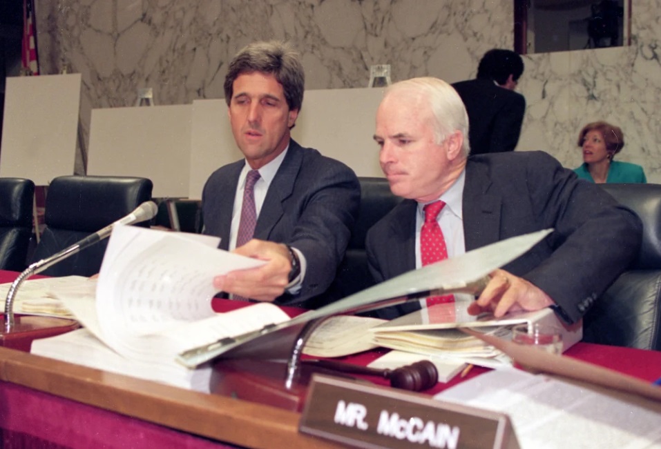 Thật kỳ lạ nhưng cũng đầy hợp lý khi người cùng McCain có mặt tại nhà tù Hỏa Lò vào năm 1993 lại chính là John Kerry. Trong suốt hai năm trước đó, theo lời một nhân viên của McCain, họ đã “bảo vệ nhau” trong cuộc chiến chính trị về những người Mỹ mất tích. Thomas Vallely, Giám đốc Chương trình Đông Dương tại Viện Phát triển Quốc tế Harvard và là người tổ chức Chương trình Việt Nam của viện này, đã theo dõi sát sao công việc của Ủy ban Đặc biệt. Ông kể: “Trong khoảng thời gian đó, đã có một cuộc chiến thực sự về vấn đề này. Mỗi ngày, luôn có ai đó cố gắng hạ bệ người này hoặc người kia. Và mỗi ngày, họ vẫn sát cánh bên nhau… và điều đó đã tạo nên tình bạn này”.