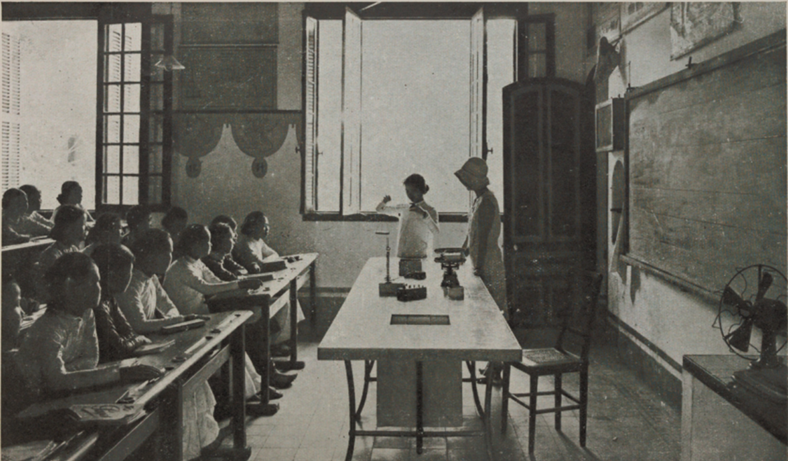 Trang thiết bị dạy học phong phú, được bổ sung và hoàn thiện mỗi năm nhờ ngân sách cấp riêng cho mục đích này. Các thiết bị giảng dạy gồm bộ sưu tập các bản đồ địa lý quan trọng, các bảng minh họa cho môn khoa học tự nhiên và các mô hình tháo lắp. Một trong hai phòng thí nghiệm khoa học được bố trí giống giảng đường nhỏ phục vụ việc thực hiện các thí nghiệm cho học sinh quan sát. Các bộ sưu tập mẫu vật được phân loại và dán nhãn, đặt trong nhiều tủ trưng bày. Có một phòng thí nghiệm chuyên biệt dùng cho môn Vật lý và Hóa học do một trợ lý người An Nam quản lý. Ngoài ra, trường còn có thư viện cho học sinh với 6875 cuốn sách và thư viện dành cho giáo viên với nhiều đầu sách xếp trong các tủ lớn. Một phòng mỹ thuật mới bố trí bằng những bộ sưu tập mẫu vẽ và các mẫu khuôn đúc cần thiết dùng cho việc dạy học.