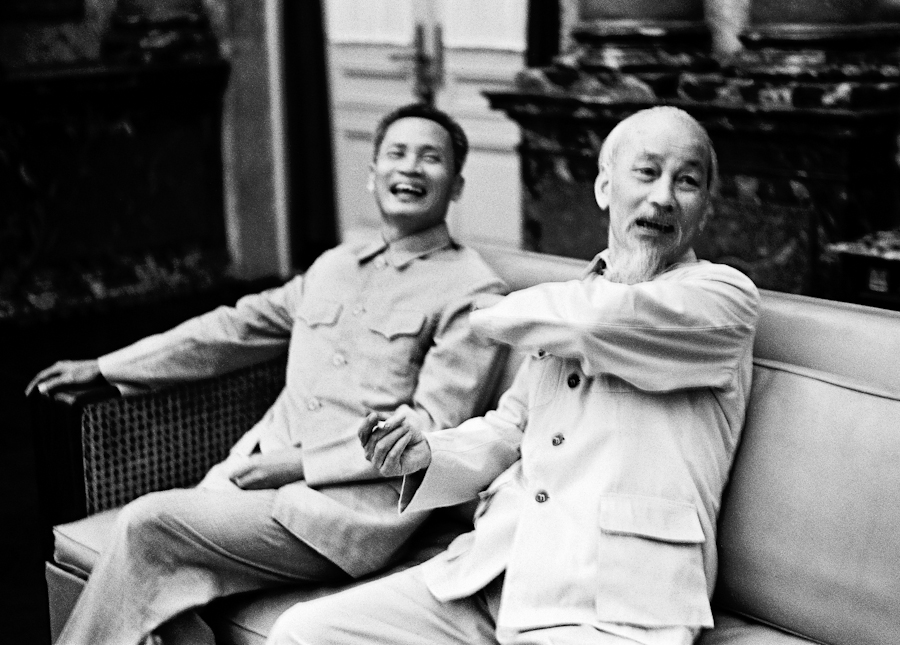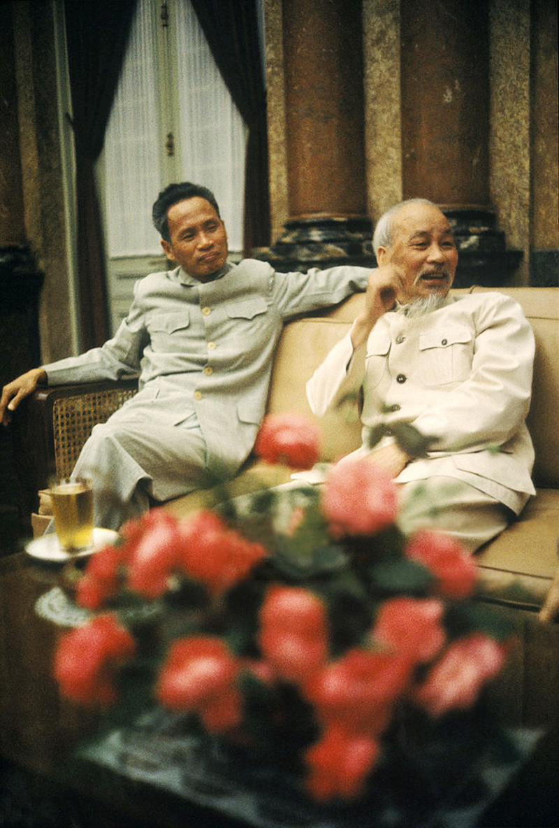 Chủ tịch Hồ Chí Minh và Thủ tướng Phạm Văn Đồng tại Phủ Chủ tịch năm 1965. Ảnh: Romano Cagnoni. Romano Cagnoni là nhiếp ảnh gia người Ý đồng hành với James Cameron trong chuyến thăm miền Bắc Việt Nam năm 1965. Ông đã thuyết phục được Bác Hồ đồng ý cho chụp ảnh mặc dù ban đầu Bác dứt khoát từ chối. Những bức ảnh này sau đó đã xuất hiện trên trang nhất của nhiều tờ báo trên khắp