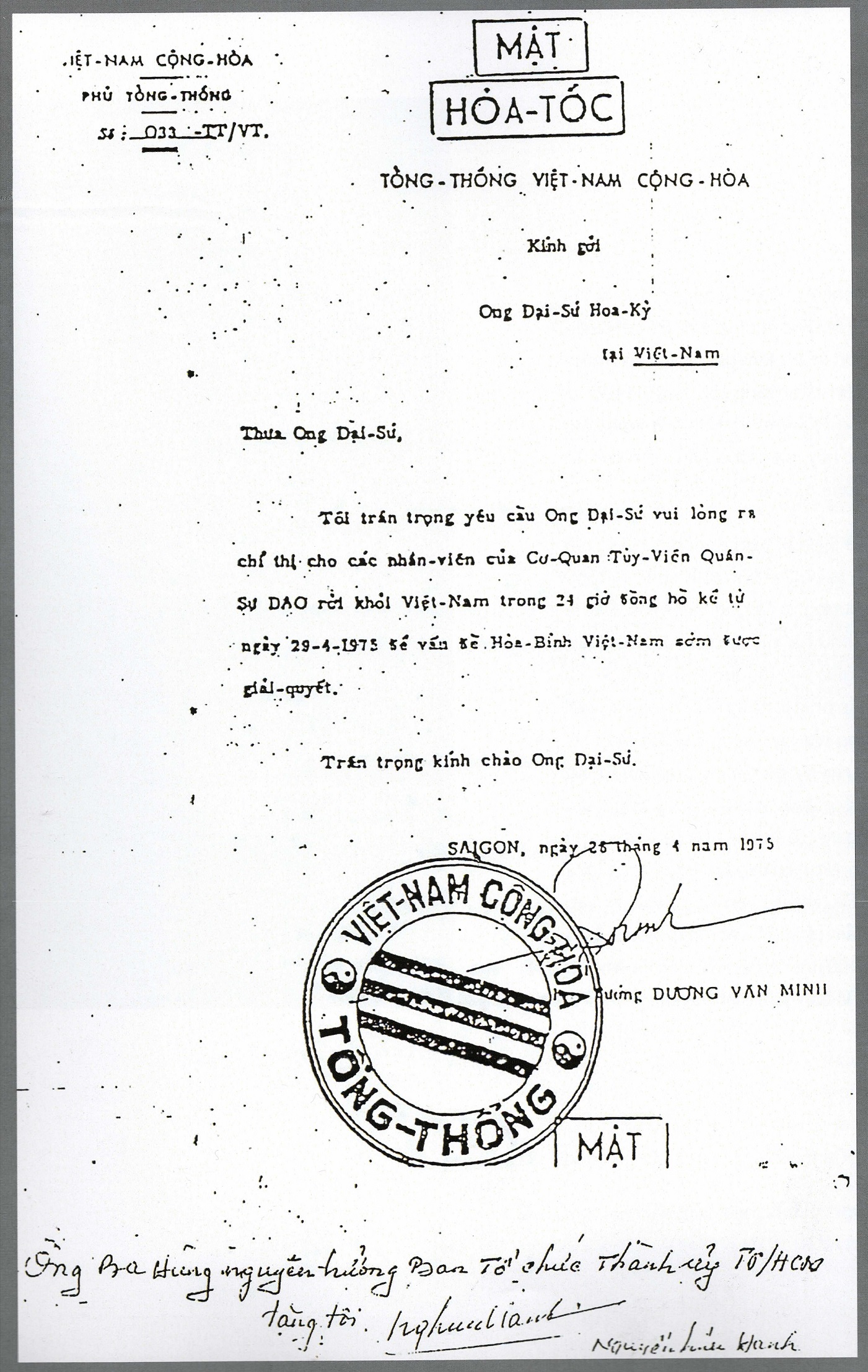 Một cuộc tháo chạy vội vã, không mấy vẻ vang diễn ra sau đó. Đám đông phóng viên, nhân viên tòa đại sứ, dân thường Việt Nam và đủ hạng người “di tản” lảo đảo chạy qua những con phố vắng vẻ, hướng về các điểm tập trung. Khi đi ngang một nhóm lính dân vệ VNCH, tôi gượng cười với họ. Một người hỏi: “Về nhà hả? Mỹ đi đi!”