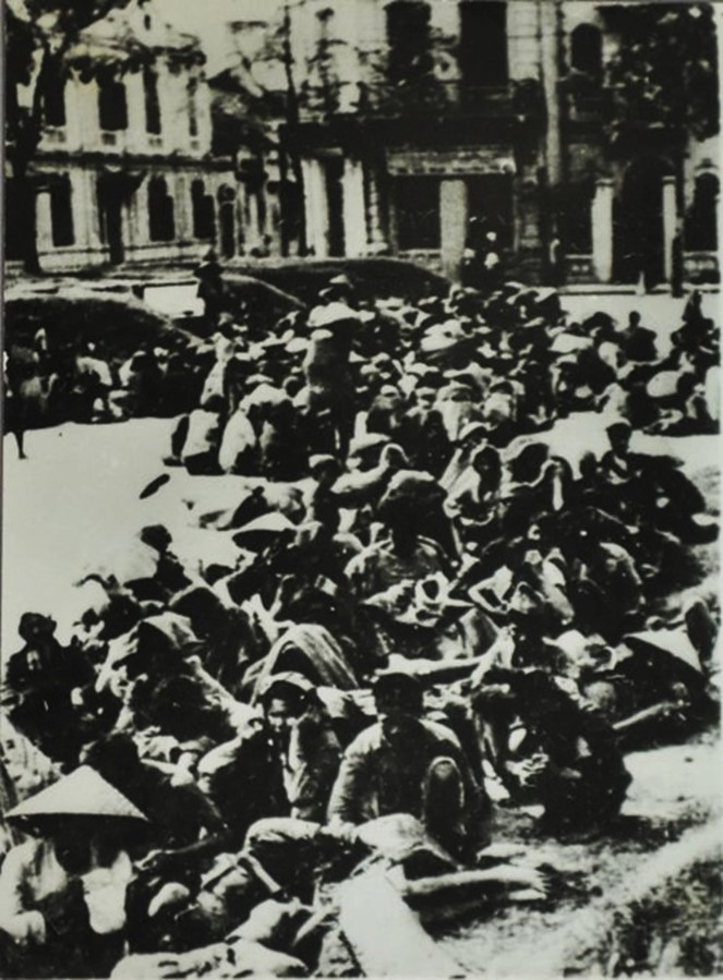Đồng bào bị đói từ Nam Định, Thái Bình, Phủ Lý, Hải Phòng, Hải Dương kéo nhau về Hà Nội để chờ phát chẩn. Ảnh: Võ An Ninh