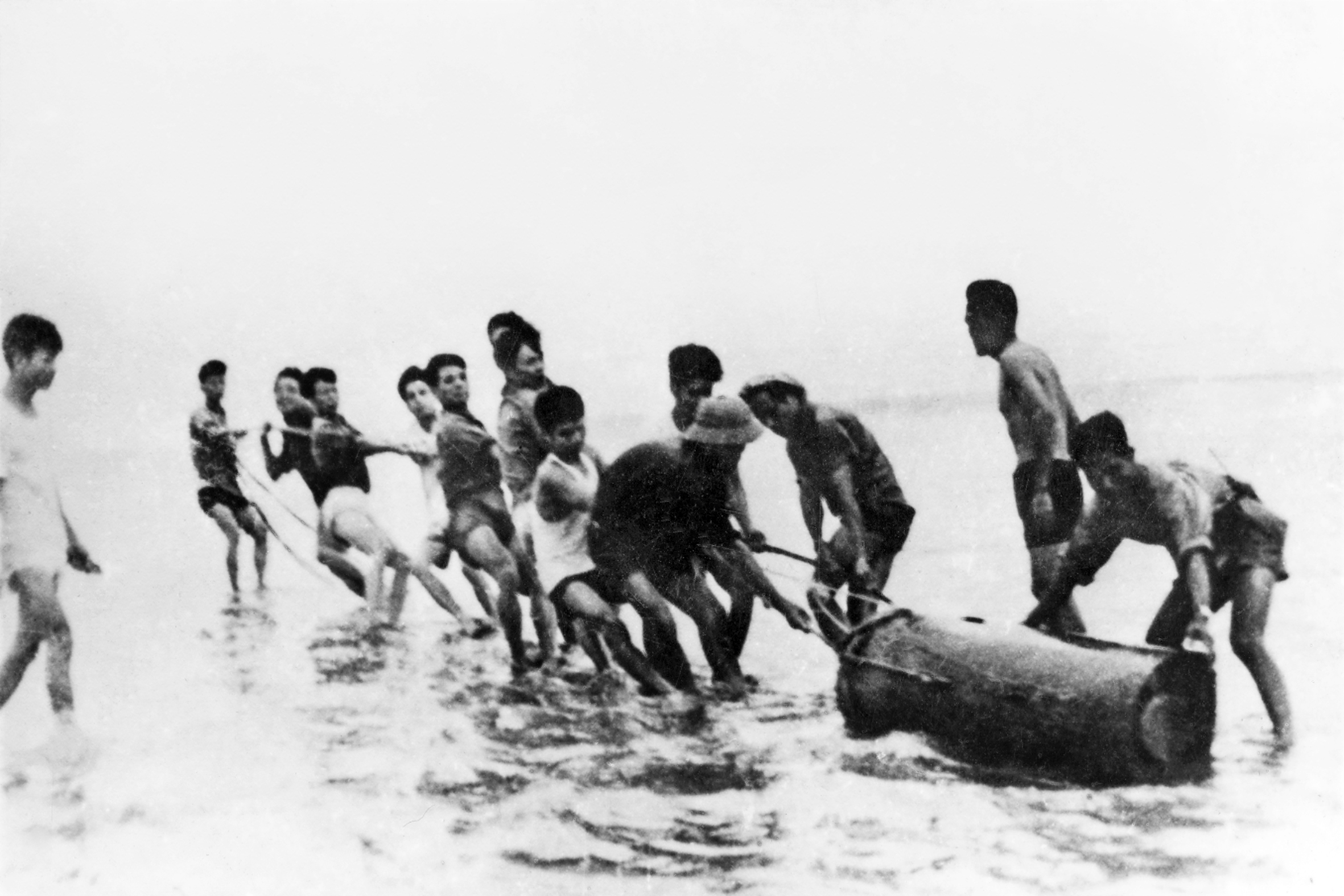 Thả cá chép tiễn ông Táo về trời, Hà Nội ngày 23 tháng Chạp, Tết Ất Mùi 1955. Ảnh: Ecole française d’Extrême-Orient